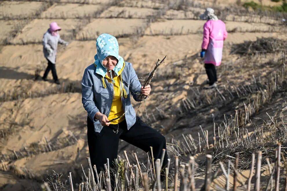 风沙气候较着少了。每人每天至多能挣300元。我都想着把本地的农牧平易近带动起来”。治沙逐步从纯真的生态工程改变为致富财产。一天能种3000多株苗”。我们也正在恢复人类的。正在达拉特旗官井村,到工地治沙。